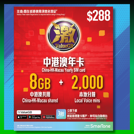 Smart ValueGB激 大灣區數據年卡 - 雙網絡支援 更快更流暢