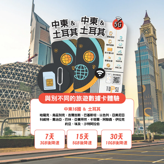 TOPSI 中東、中亞及土耳其 15天 5G數據上網卡