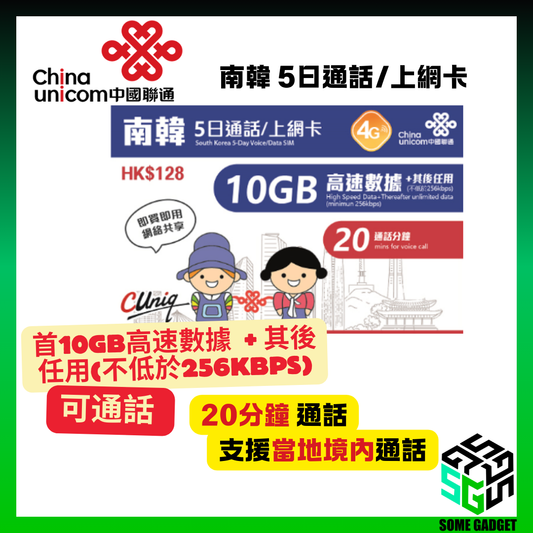 China Unicom 4G/3G South Korea 5-day call/internet card (unlimited Internet + 20 minutes of calls)) first 10GB high-speed data
