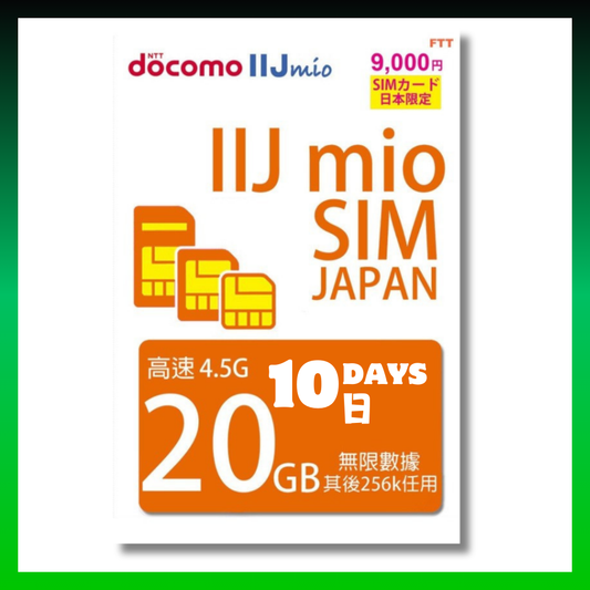 Docomo IIJmio 4G LTE 10-day 20GB Japanese native unlimited data network card