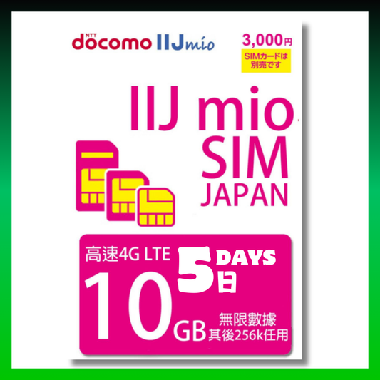 Docomo IIJmio 4G LTE 5-day 10GB Japanese native unlimited data network card