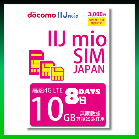 Docomo IIJmio 4G LTE 8-day 10GB Japanese native unlimited data network card