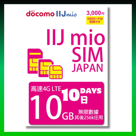 Docomo IIJmio 4G LTE 10-day 10GB Japanese native unlimited data network card