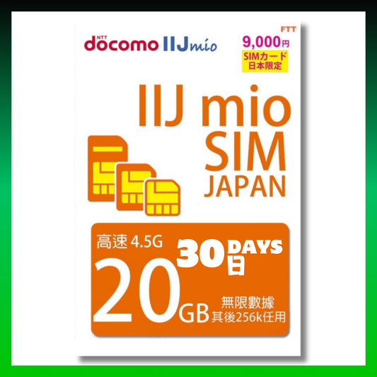Docomo IIJmio 4G LTE 30-day 20GB Japanese native unlimited data network card