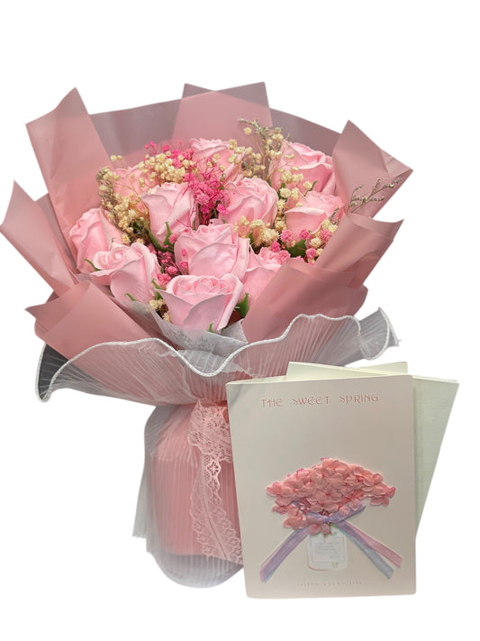 粉紅玫瑰 香梘花束 - 11枝