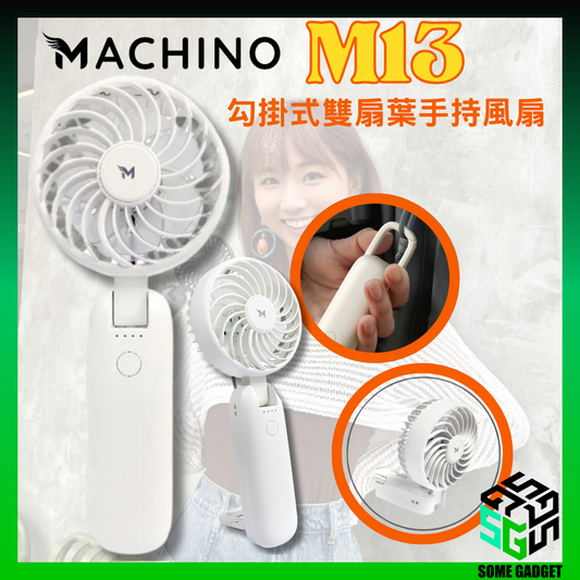 Machino - M13 hook-type double-blade handheld fan | Front and rear fan blades | Four airflow levels | 180 degrees front and rear | Double-click accidental touch protection | Hong Kong licensed