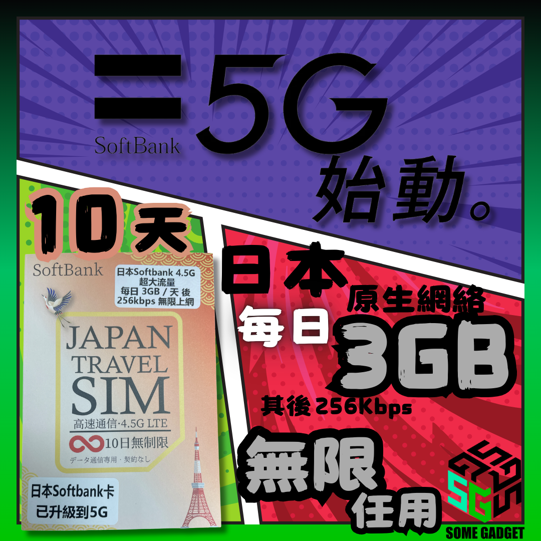 日本 Softbank 5G 原生網絡卡 10日 - 日本原生網絡IP 數據 上網卡